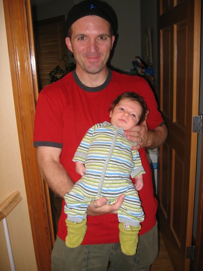 Isn't he just adorable! Zutano booties rule.