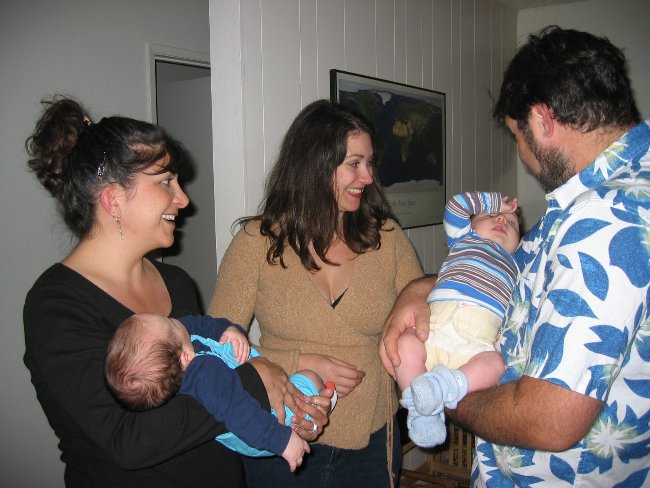 Michele holding Little D while Big D holds Ryder. Jenna in the middle.