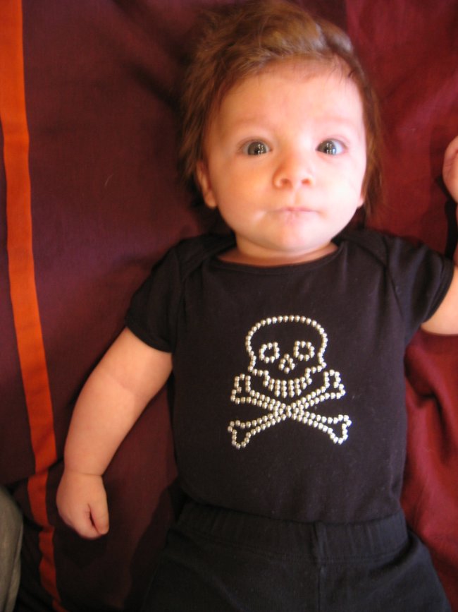 "Auntie Chaia" kicked down this awesome onesie. Makes him look badass.