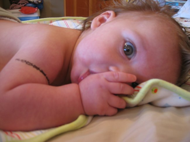 Ryder takes five. Or one, actually...he started sucking his thumb with vigor this month.