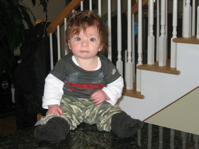 December 30, 2005: Ryder sits so well now, we let him hang out on the counter while we cook.*