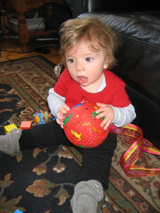 In March Ryder started playing ball with others: catching it and rolling it back.