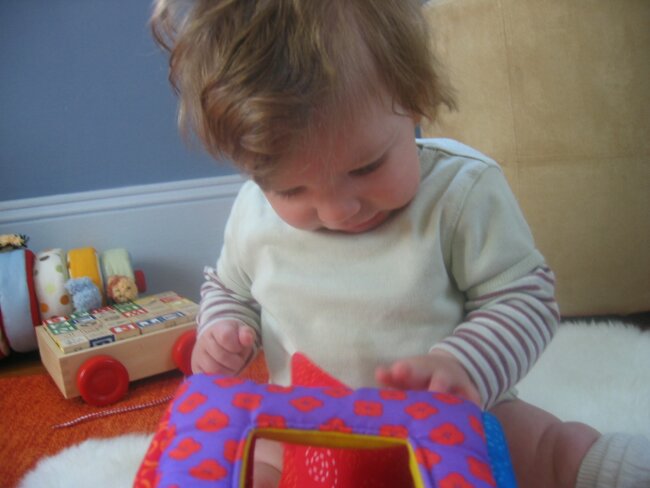 One of his favorite activities is taking things out of containers. This occupies much of the day.