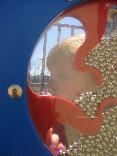 This was part of the play structure. It's a bunch of ball barings that make a great noise as you spin the thingie around.