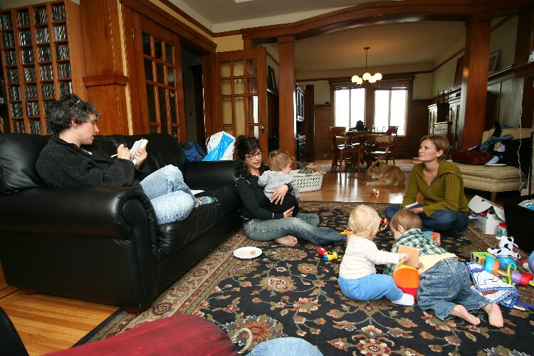 Rachel, Michele, and Bridget plan the party while the boys play. (Thanks, Stephen, for taking the photos.)