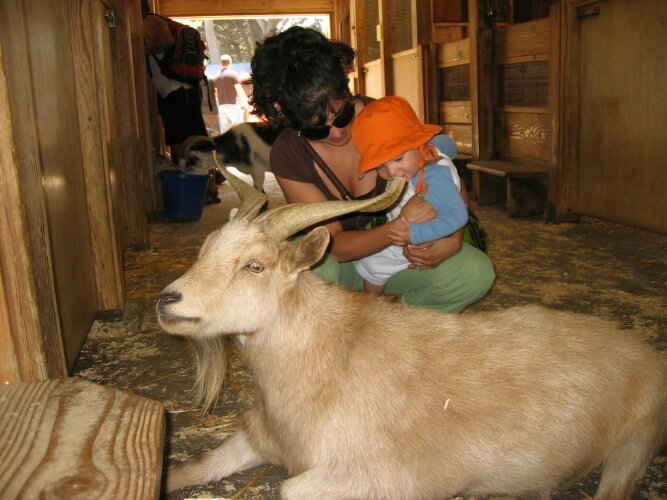 Ryder called the goats dogs and enjoyed himself in the petty zoo.