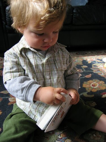 Ryder's pretty obsessed with books these days. He seems driven to identify as much as possible on the pages.