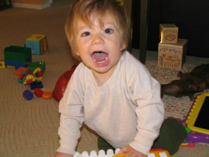 Ah: teeth. By the end of September, all of Ryder's first-year molars were in. His first eyetooth also came in.