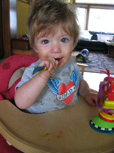 We've started letting Ryder feed himself with a spoon.