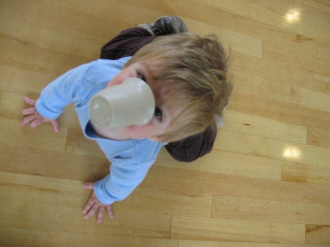 A million toys at Kindergym, and Ryder plays with a cup for half an hour.