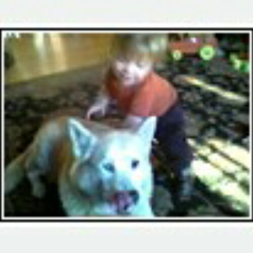 Ryder uses Toli to help himself stand up. Their relationship is developing. Moslty, we think Tol puts up with Ryder because Ryder feeds him so much.