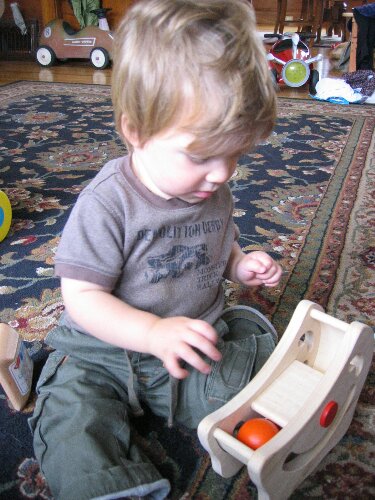 This is Ryder's new ball pounding toy. It comes with a wooden mallet (not shown) which is a, um, dangerous toy to give a toddler.