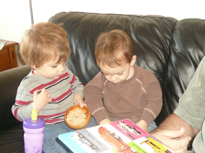 Devo read to the boys while we made breakfast. It was much more sane than our typical meal prep.