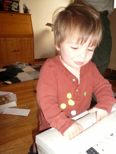 Any paper left within his reach gets put into the shredder. And yes, it's unplugged.