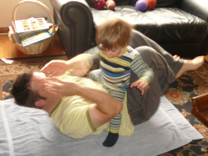 Always willing to help Dad with his morning sit-ups