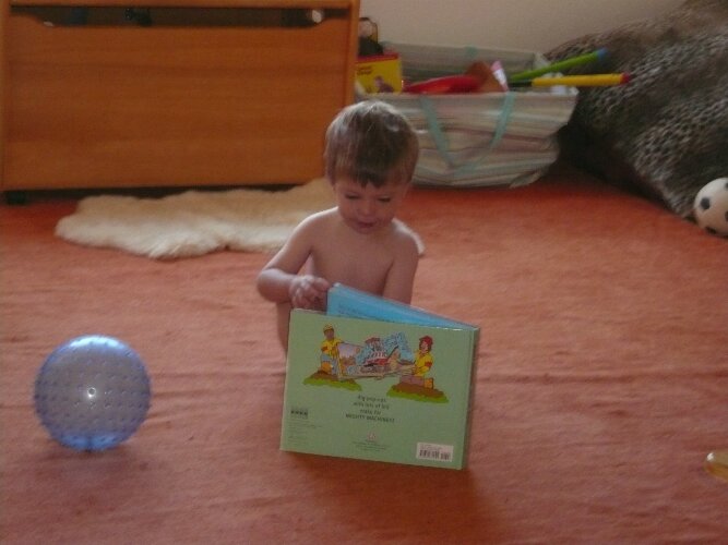 Ryder has started to play by himself more. One day Michele looked in his room to find him naked and reading a book.