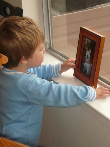 Every few days, Ryder moves this photo of Toli to the window sill and talks to it, hugs it and kisses it. It breaks our hearts.