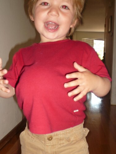 Ryder often puts his babies, stuffies or a ball under his shirt. He then pats his belly and gets rather maternal.