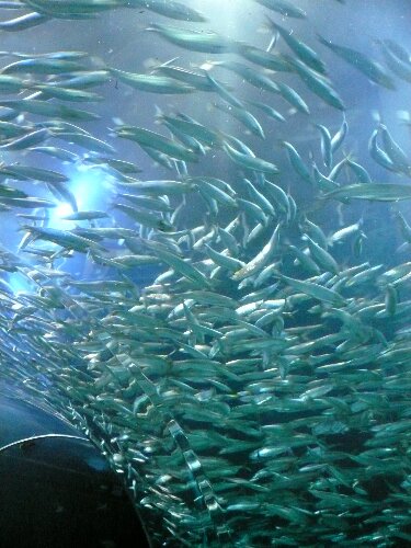 In the tunnel, which contains fish from the bay.