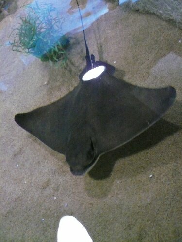 Beautiful bat ray swimming before feeding time