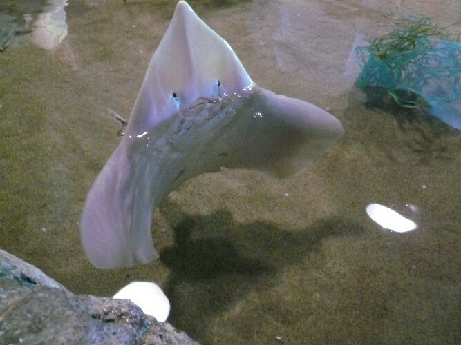 The bat rays and skates were anticipating their lunch and were very active. It was cool how much of their body the skates could get out the water.