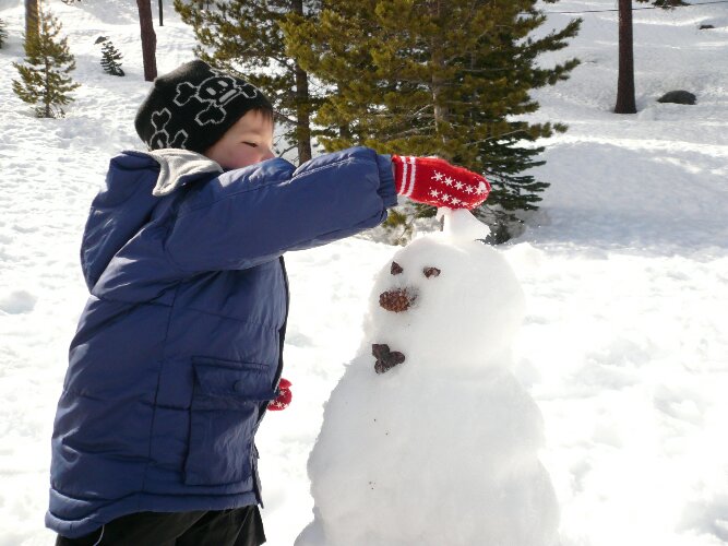 Our first family snowman, at a sledding park