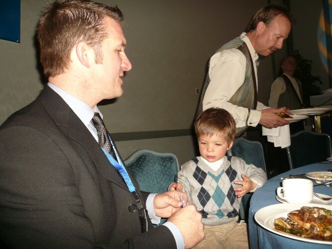 Here we entertained him by letting him cut paper with a butter knife.