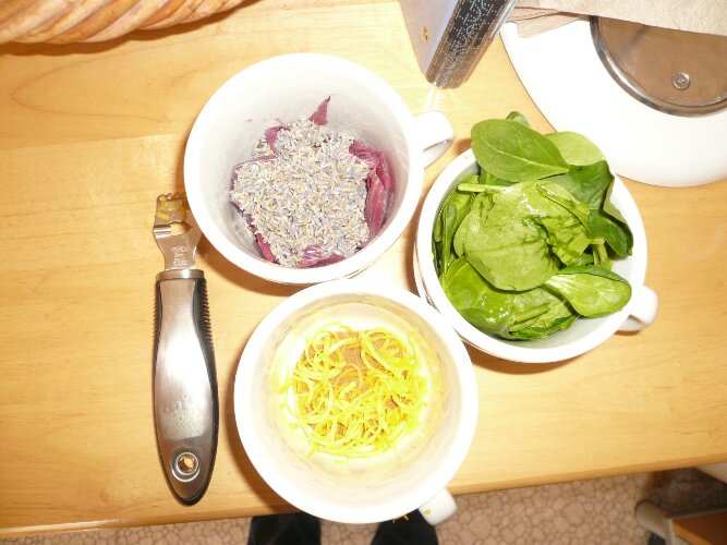 Michele dyed some eggs with food items, such as lemon rind and spinach.
