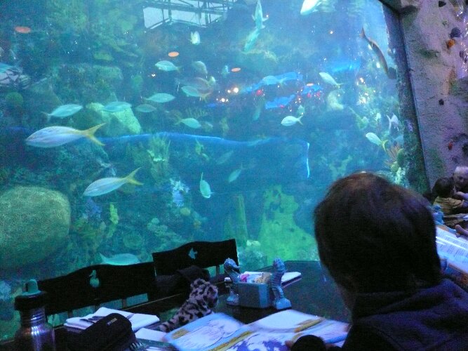 It was cool to eat next to a giant tank, but we should have gone for just dessert.