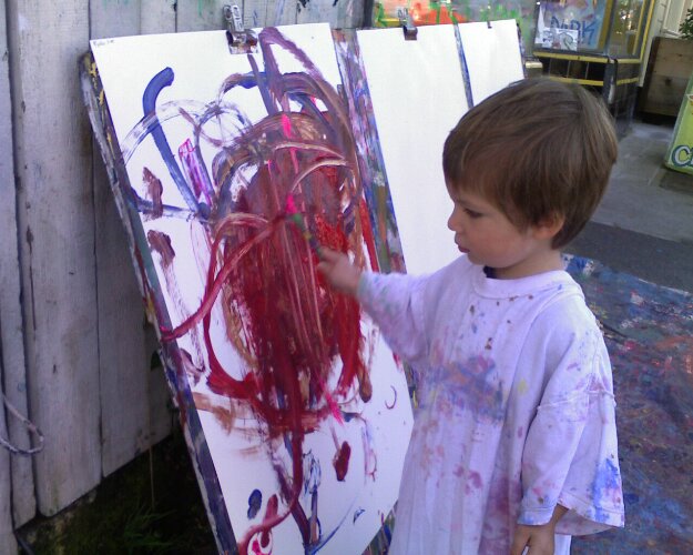 After many, many months of art classes, I finally snapped of few pics of Ryder painting.