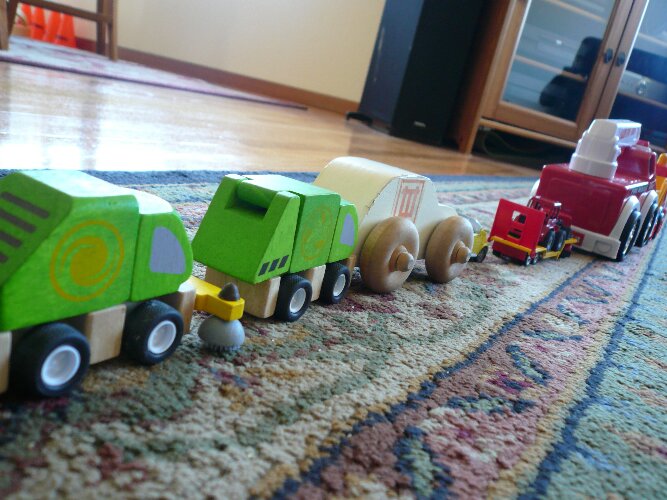 These cars and trucks stayed on the "road" for several days. We didn't dare remove them.