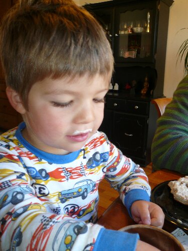 With a cream cheese mustache