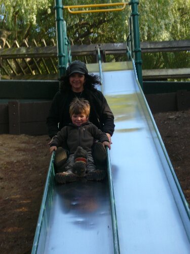 These great slides are just down the street from their house.