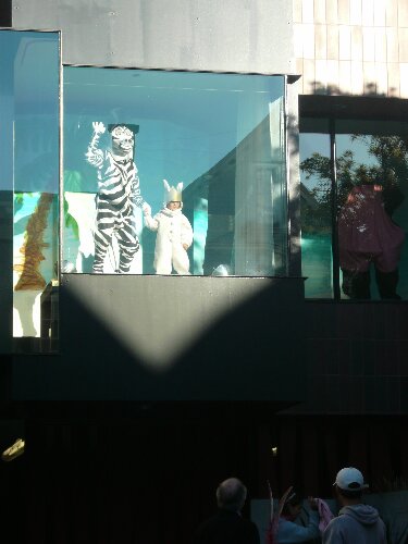 Each year there are costumed people dancing in the windows of this house. This year's theme was "Madagascar."
