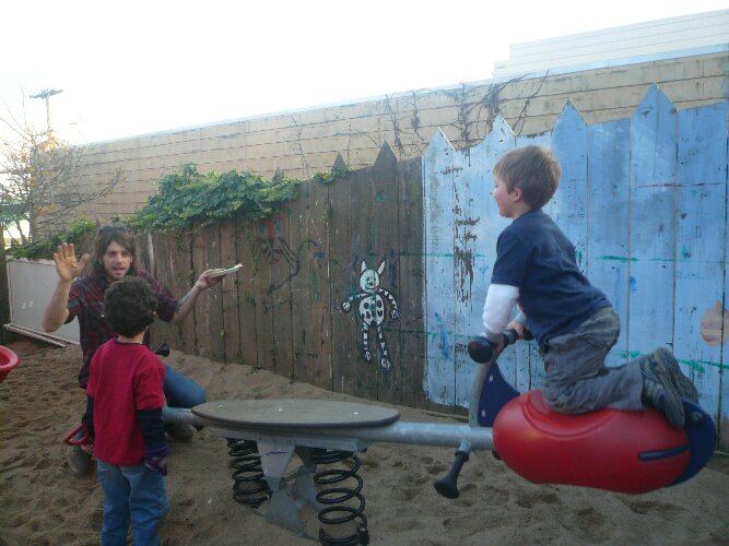 Keith and Ryder bouncing and chatting with Marcus