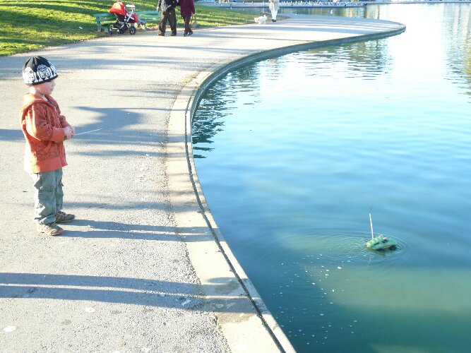 The RC car can go in water!