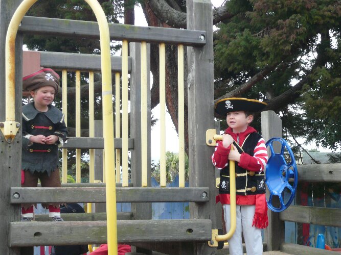 Ryder and Wylie on the "pirate ship."