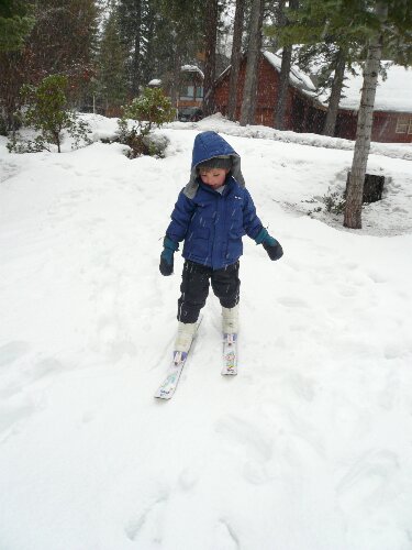 After skating, we got Ryder on a pair of skis from the garage and he skiied around the house.