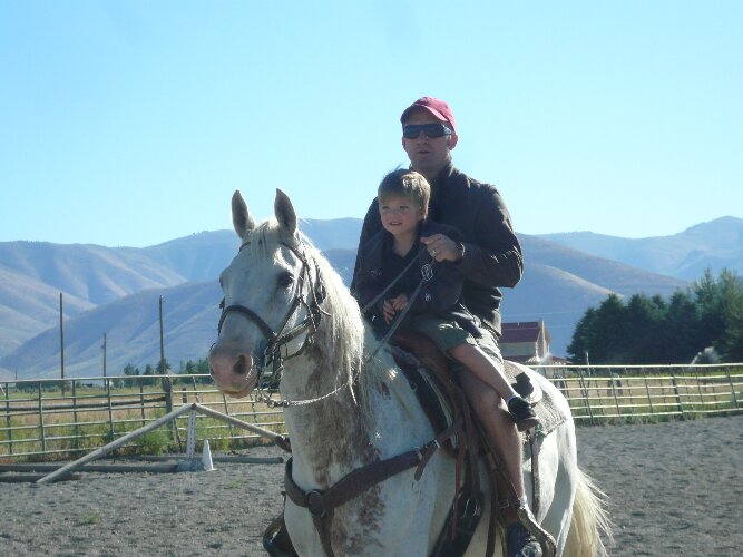 Ryder has ridden many ponies, but to make sure he'd be okay riding (with Greg) on a horse, we first went to a ranch to give them a test ride. Ryder loved it, so "our cowboy" packed up the horses and we met him up valley for a backcountry ride.