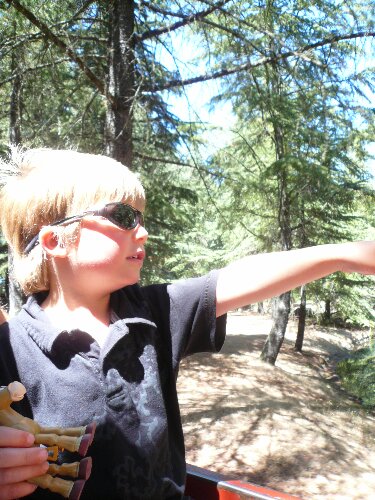 Feeling the wind in his hair at Train Town.