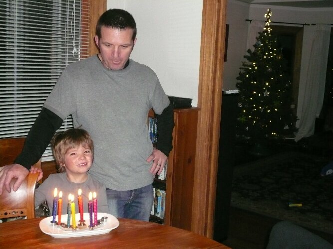 Hannukah and Christmas co-existing happily in our home