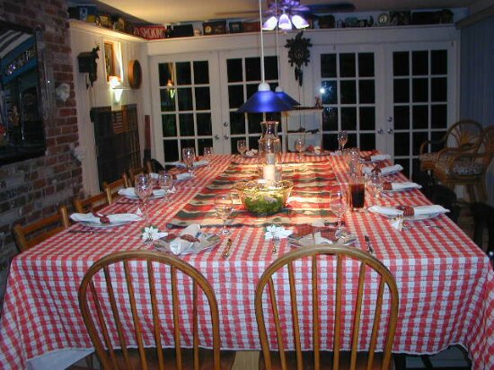 The Christmas dinner table at Greg's family's house is a converted pool table.