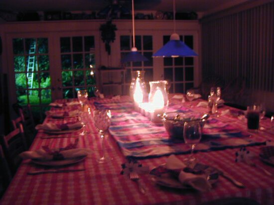 Dinner table by candlelight.