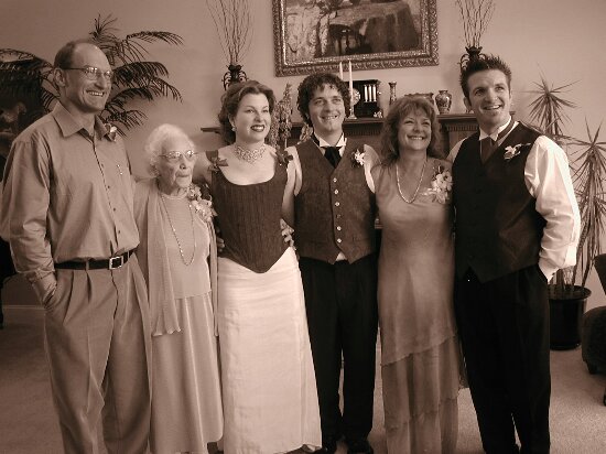 The Holm side of Jeremy's family: Uncle Alan, Grandma Lee, Annette & Jer, Audray and Greg