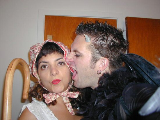 Halloween, 2002, shortly following Michele's foot surgery. She used the Bo-Peep cane as a defensive weapon.