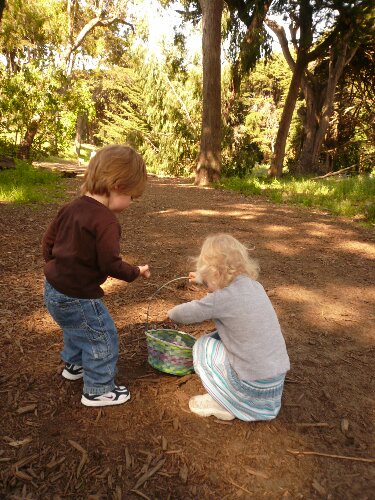Ryder and Emma filled (and dumped) basketfuls of rocks, sticks, leaves and dirt.