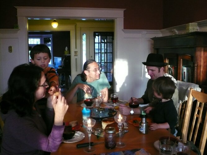 Sarah and Moishe had baked challah, and we made some pizzas for dinner.