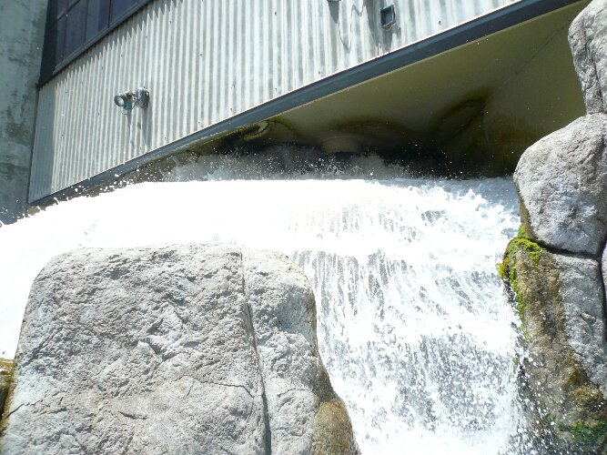 We stepped outside and discovered this timed "waterfall" which flows over a window of the aquarium. We later stood under the waterfall, protected by the glass.