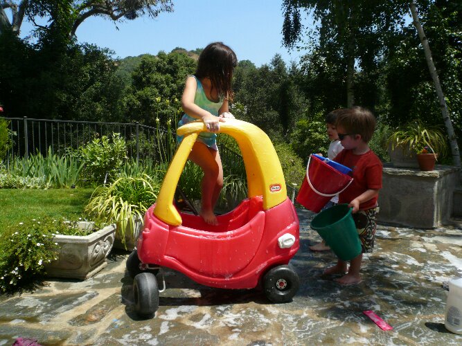 Nic, Jared and Ryder washing the car