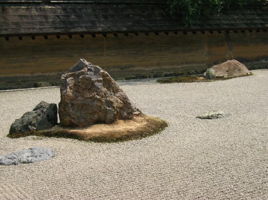 The zen rock garden of Ryoan-ji. The garden is arranged in